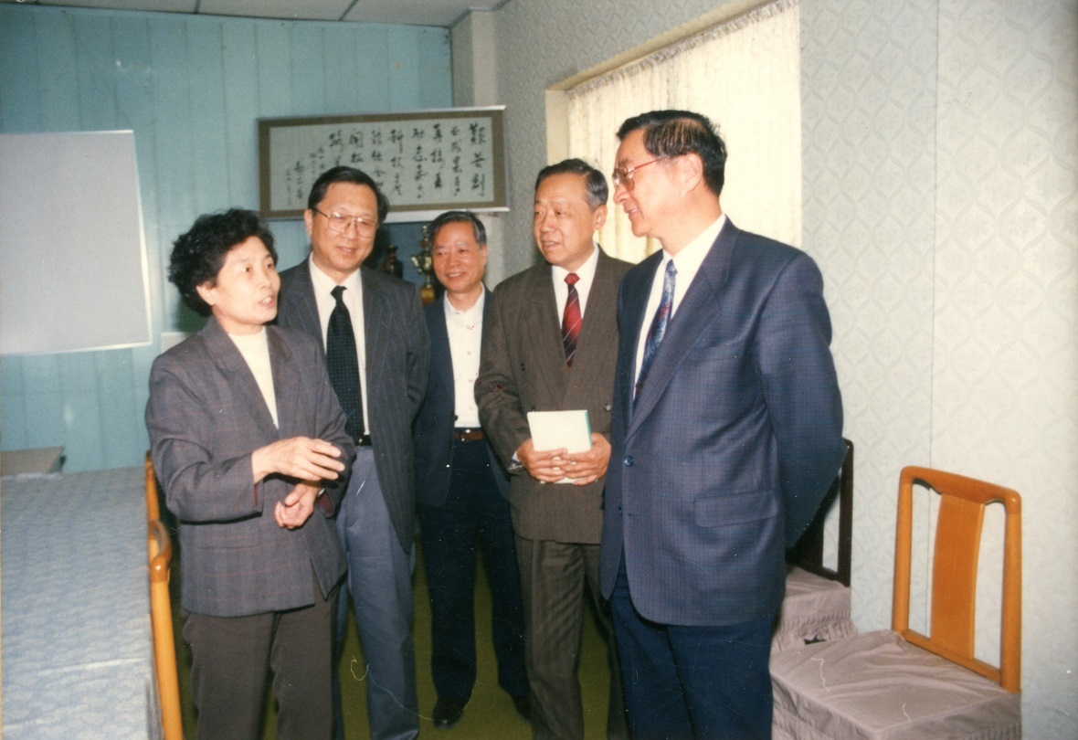 1996年,电子工业部部长胡启立、中国科学院副院长路甬祥视察微电子中心