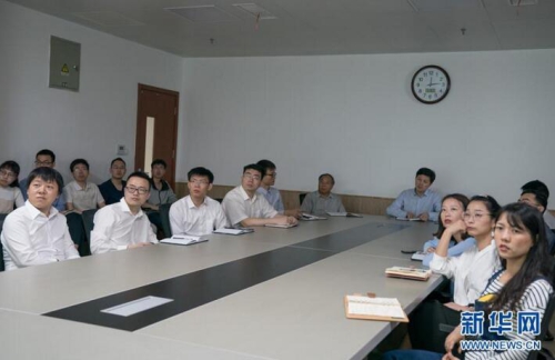 在中科院武汉物理与数学研究所会议室,周欣团队在开会(4月19日摄)。虽然工作繁忙,但只要有条件,周欣都会坚持参加团队每周举行的例行组会,和所有的硕士生、博士生一起讨论最新研究进展。新华社记者 金立旺 摄