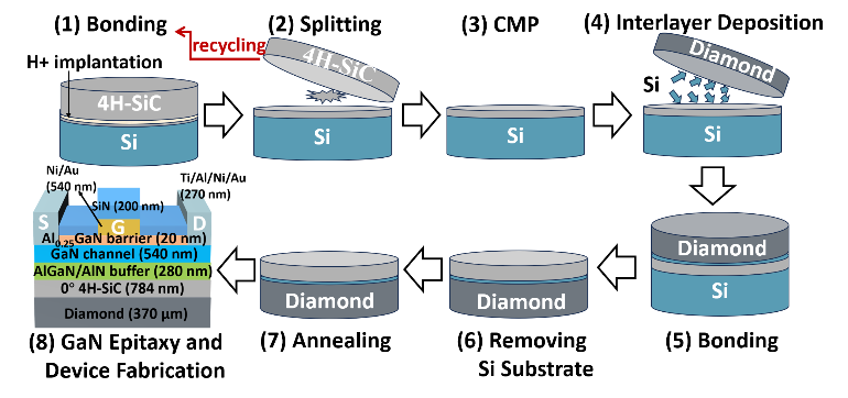 图1 基于4H-SiC /Diamond衬底的GaN HEMT制备流程