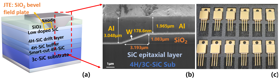 图2 4H/3C - SiC肖特基势垒二极管及横截面示意图
