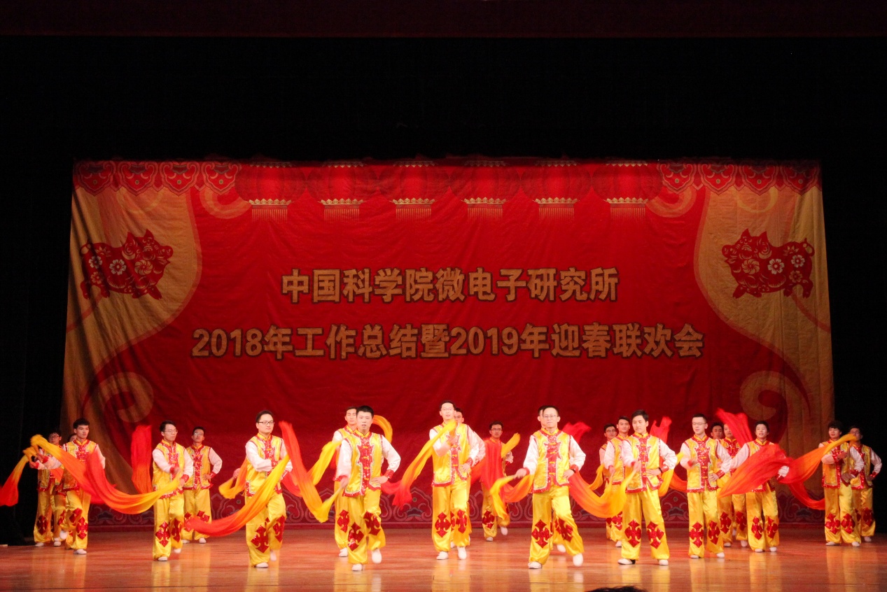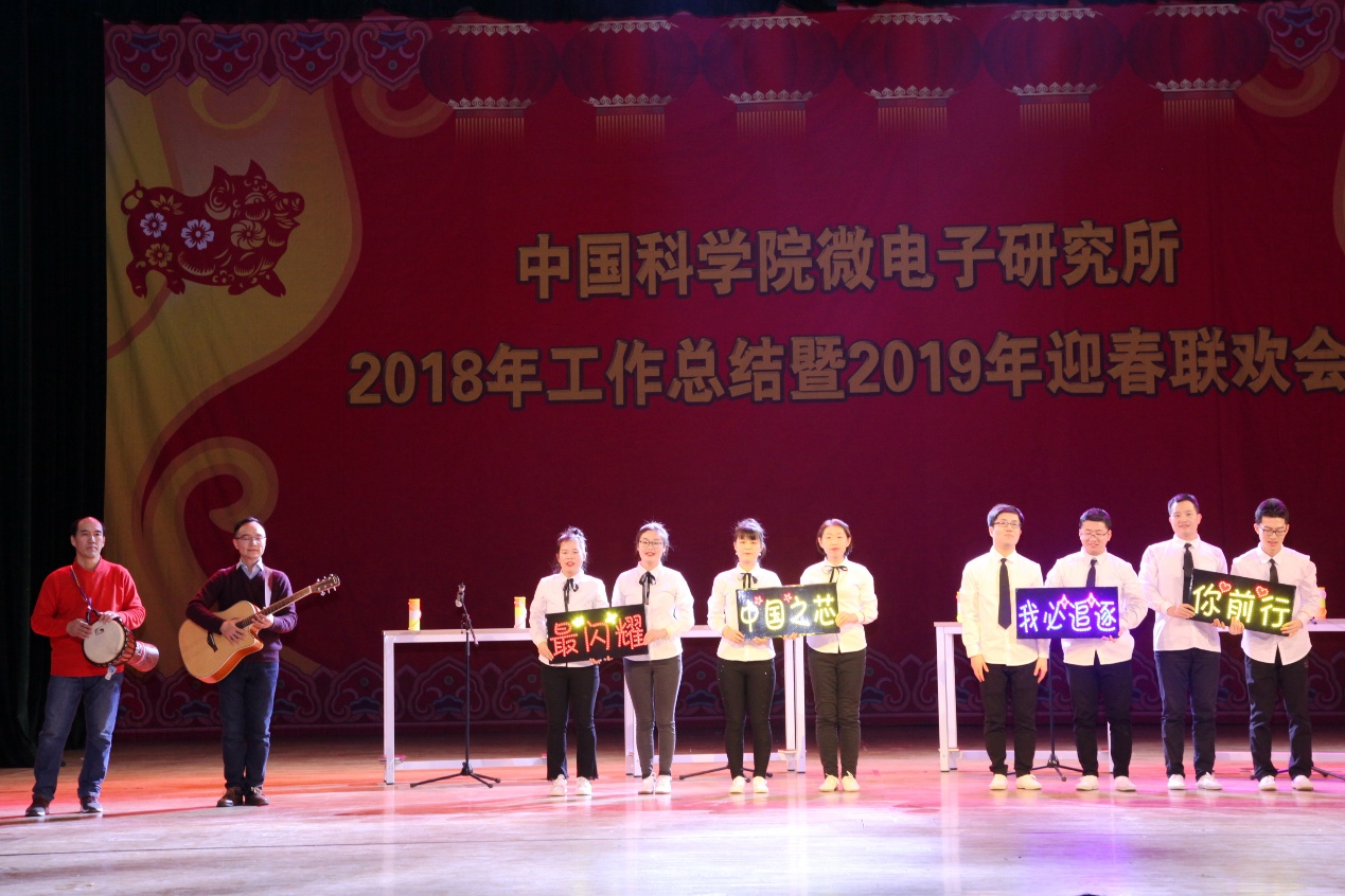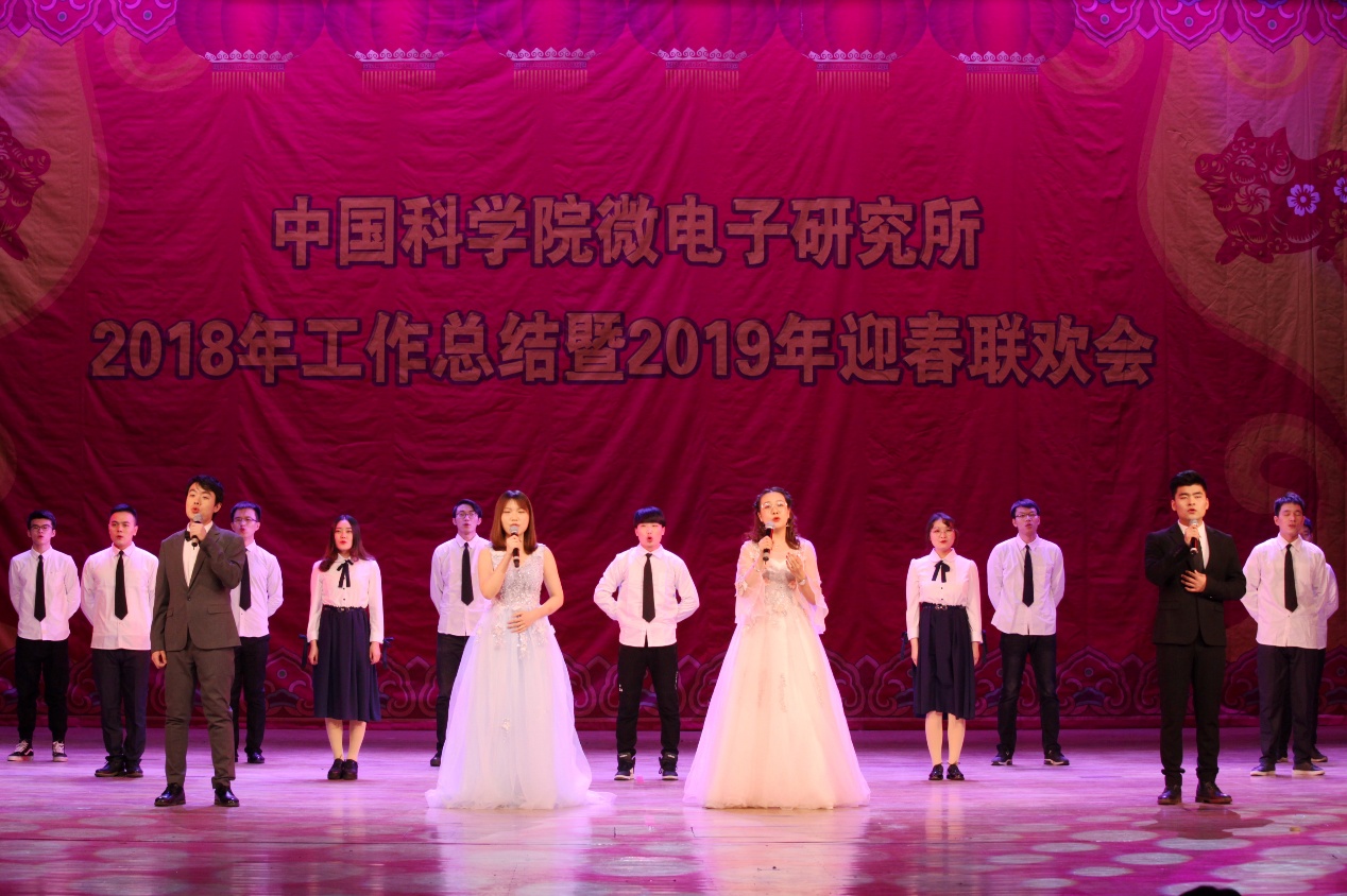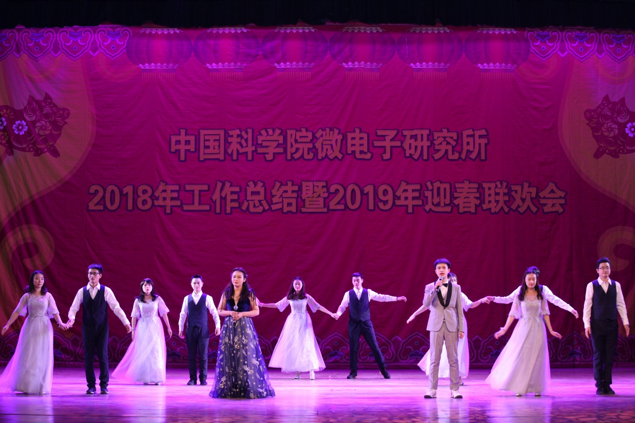2019年迎春联欢会在所团委/研究生党总支的舞蹈《开门红》的欢快乐曲中拉开了序幕。所领导班子登台向全所职工、研究生和离退休同志拜年,致以节日的问候和美好的祝愿。联欢会坚持简朴、节俭的原则,18个节目均由各党总支/党支部、分工会、工青妇组织自编自导自演。微电子重点实验室带来歌曲《记忆时光》,叶甜春所长与演员们共同引吭高歌,用歌声带领大家走进那段并肩奋斗的记忆时光。先导中心的风采展示《“芯”风采》秀出了科研人特有的气质与风采。硅器件中心/管理中心监理部的配乐诗朗诵《中国梦》、电子系统中心/感知中心/封装中心的小合唱《祖国不会忘记》、存储器中心的手语舞《国家》抒发了科技工作者的拳拳爱国心、浓浓报国情。离退休党总支的太极功夫扇《中国功夫》展现了离退休同志热情饱满的精神状态。妇委会的舞蹈《茉莉花开》用优美的舞姿、缤纷的舞步讴歌绚丽的新时代。通信中心的情景剧《小微和小薇》用创新成果献礼研究所60周年华诞。新近加入微电子所大家庭的光电研发部的合唱《同唱一首歌明天会更好》唱响了集成电路创新研究院建设的崭新号角,祝福研究所明天会更好。健康电子中心的影子剧《青春剪影》用幽默诙谐的表演展现了研究生美好的工作学习生活。基础保障部的原创歌曲《月季花开》用美妙的旋律带领大家徜徉在花的海洋。机关的黄梅戏《女驸马》、光电研发部的戏曲《变脸》带领大家再次领略了经典国粹的魅力。高频高压中心的诗歌朗诵《六十年峥嵘岁月》热情讴歌了微电子所60年的光辉历程和辉煌成就。智能制造中心的歌伴舞《青春万万岁》展现了新一代微电子人的青春气息和朝气蓬勃的精神面貌。EDA中心的表演唱《夜空中的中国芯》抒发了微电子人在求“芯”之路上的坚毅和执着。所工会的歌伴舞《不忘初心》带领大家重温了微电子人科技报国的初心。精彩纷呈的文艺节目,将现场气氛一次次推向高潮,让观众提前感受到了新春节日的欢乐气氛。演出在《难忘今宵》的欢快乐曲声中落下帷幕。