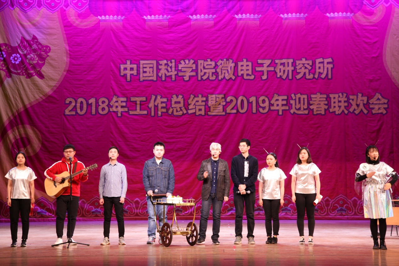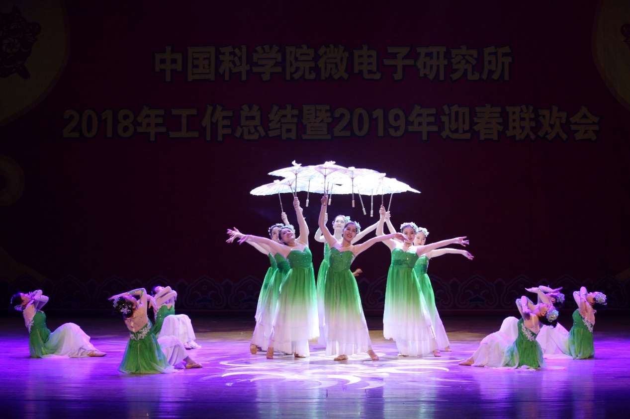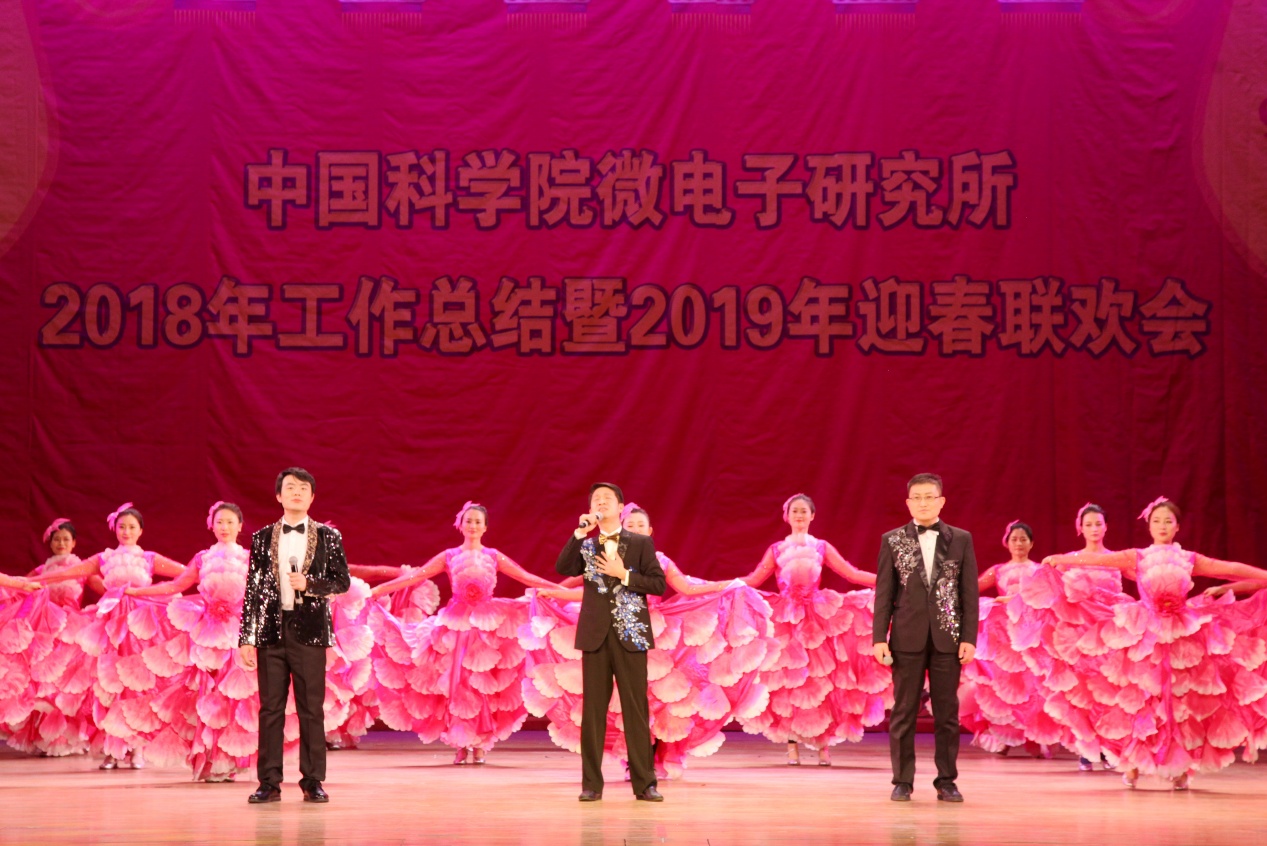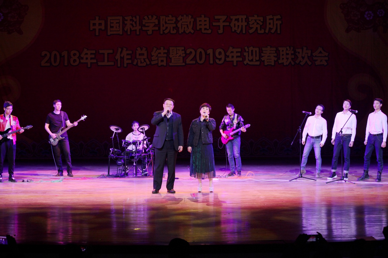 2019年迎春联欢会在所团委/研究生党总支的舞蹈《开门红》的欢快乐曲中拉开了序幕。所领导班子登台向全所职工、研究生和离退休同志拜年,致以节日的问候和美好的祝愿。联欢会坚持简朴、节俭的原则,18个节目均由各党总支/党支部、分工会、工青妇组织自编自导自演。微电子重点实验室带来歌曲《记忆时光》,叶甜春所长与演员们共同引吭高歌,用歌声带领大家走进那段并肩奋斗的记忆时光。先导中心的风采展示《“芯”风采》秀出了科研人特有的气质与风采。硅器件中心/管理中心监理部的配乐诗朗诵《中国梦》、电子系统中心/感知中心/封装中心的小合唱《祖国不会忘记》、存储器中心的手语舞《国家》抒发了科技工作者的拳拳爱国心、浓浓报国情。离退休党总支的太极功夫扇《中国功夫》展现了离退休同志热情饱满的精神状态。妇委会的舞蹈《茉莉花开》用优美的舞姿、缤纷的舞步讴歌绚丽的新时代。通信中心的情景剧《小微和小薇》用创新成果献礼研究所60周年华诞。新近加入微电子所大家庭的光电研发部的合唱《同唱一首歌明天会更好》唱响了集成电路创新研究院建设的崭新号角,祝福研究所明天会更好。健康电子中心的影子剧《青春剪影》用幽默诙谐的表演展现了研究生美好的工作学习生活。基础保障部的原创歌曲《月季花开》用美妙的旋律带领大家徜徉在花的海洋。机关的黄梅戏《女驸马》、光电研发部的戏曲《变脸》带领大家再次领略了经典国粹的魅力。高频高压中心的诗歌朗诵《六十年峥嵘岁月》热情讴歌了微电子所60年的光辉历程和辉煌成就。智能制造中心的歌伴舞《青春万万岁》展现了新一代微电子人的青春气息和朝气蓬勃的精神面貌。EDA中心的表演唱《夜空中的中国芯》抒发了微电子人在求“芯”之路上的坚毅和执着。所工会的歌伴舞《不忘初心》带领大家重温了微电子人科技报国的初心。精彩纷呈的文艺节目,将现场气氛一次次推向高潮,让观众提前感受到了新春节日的欢乐气氛。演出在《难忘今宵》的欢快乐曲声中落下帷幕。