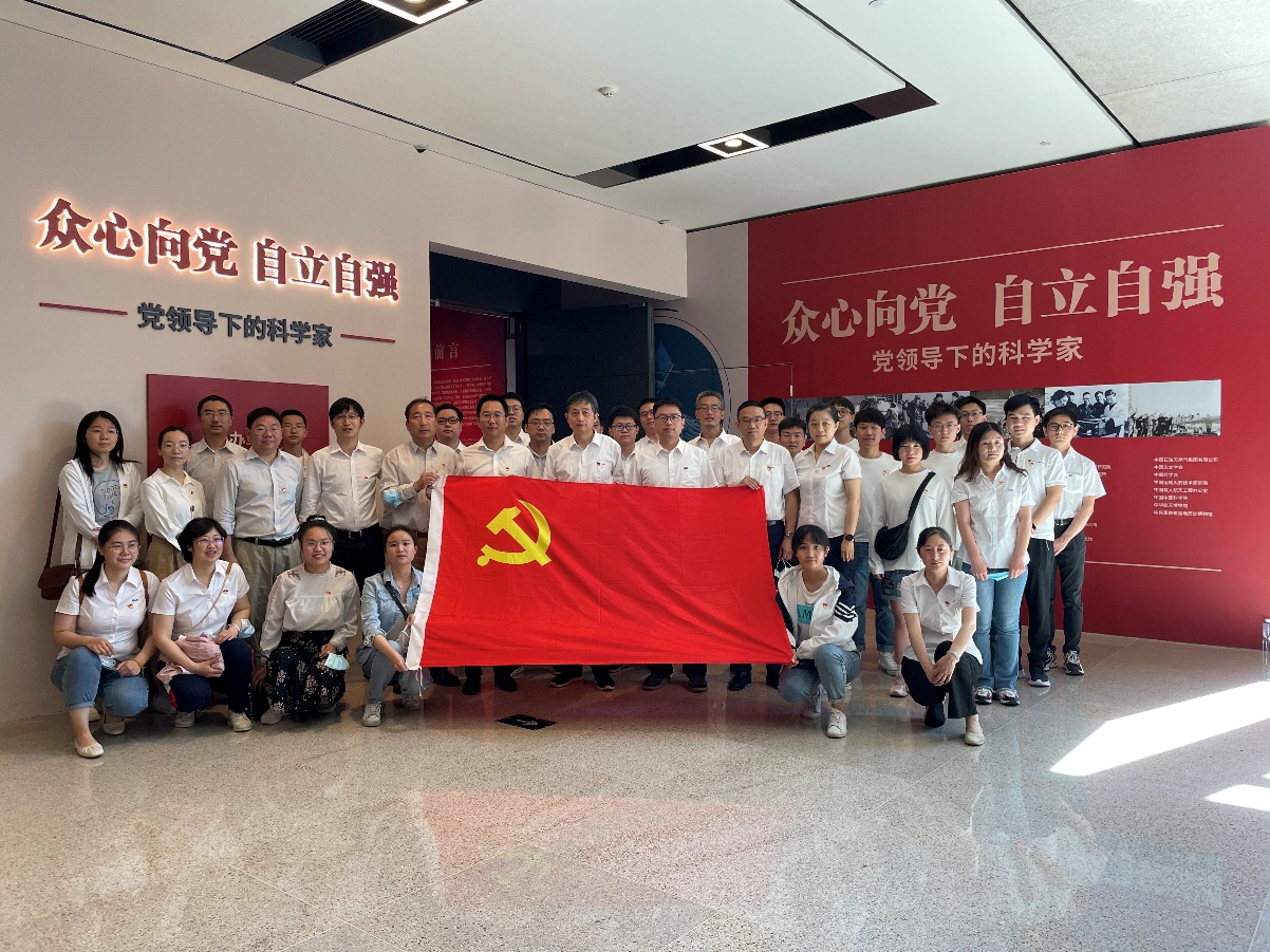 在国家博物馆,党员同志们参观了“众心向党 自立自强—党领导下的科学家”主题展。本次展览以中国共产党的坚强领导和伟大指引为主线,以科学家精神内涵为框架,设立以爱国、创新、求实、奉献、协同、育人为主题的六部分展区和“众心向党 走向复兴”专题。展览将“两弹一星”精神、西迁精神、载人航天精神、抗疫精神、探月精神等革命精神融汇贯穿其中,立体呈现百年来在党的坚强领导下,科技工作者投身科学救国,科技报国、兴国、强国伟大事业的感人故事,特别是着力呈现了党的十八大以来,广大科技工作者紧密团结在以习近平同志为核心的党中央周围,肩负起历史重任,迎着新一轮科技革命和产业变革的潮头奋力前行的时代壮歌。