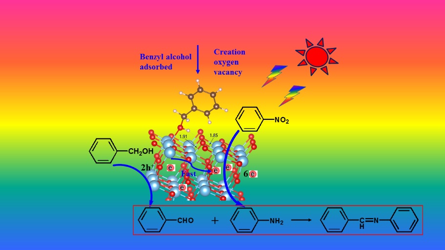 在国家重点研发计划、中国科学院战略性先导科技专项和国家自然科学基金等的资助下,中科院福建物质结构研究所结构化学国家重点实验室曹荣和高水英团队,在可见光催化氧化反应和还原反应耦合在一个光催化反应体系研究中取得新进展。该团队巧妙地将苯甲醇氧化以及硝基苯还原反应耦合到同一个体系当中。通过理论计算以及顺磁共振证明了反应过程中在二氧化钛表面有大量的氧空位形成。这种在反应过程中原位生成氧空位的方法避免了高温高压的苛刻条件,同时也有效拓展了体系的可见光吸收范围。该耦合体系中无需任何牺牲剂,光生电子用于硝基苯还原反应,而具有强氧化性的空穴可以催化苯甲醇还原,极大促进了光生载流子的分离及利用,光催化活性显著。上述结果发表在催化类期刊Journal of Catalysis( 2019, 373 116-125)上。