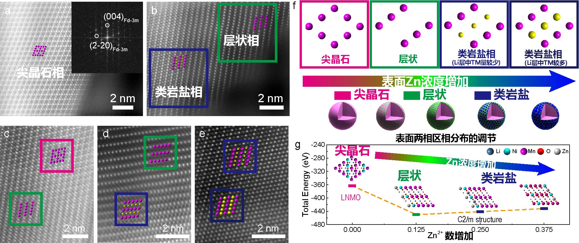Zn2+促使尖晶石结构表面产生相变:精确控制固相反应,获得层状和类岩盐共存的表面两相区,基于相结构和构成的优化提升电极材料的稳定性