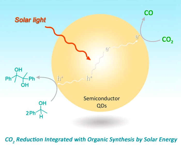 图1. 可见光下半导体量子点光催化CO2还原耦合氧化有机合成反应