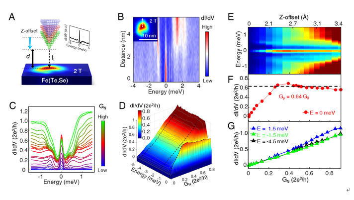 这项研究工作利用STM/S技术,观测到了磁通涡旋中马约拉纳零能模的近量子化电导平台特征,给出了铁基超导体中存在马约拉纳零能模的关键性实验证据,为研究马约拉纳零能模和推动未来拓扑量子计算起到了重要的作用。相关研究结果于12月12日在《科学》(Science)杂志在线发表。中科院物理所、国科大博士生朱诗雨、孔令元、曹路和博士陈辉为共同第一作者,张余洋(国科大)、丁洪、高鸿钧为共同通讯作者。美国布鲁克海文国家实验室研究员顾根大提供了高质量的单晶样品,麻省理工学院教授傅亮提供了理论支持。该工作得到科技部(2015CB921000, 2015CB921300, 2016YFA0202300)、国家自然科学基金委 (11234014, 61888102)和中科院(XDB28000000, XDB07000000, 112111KYSB20160061)的支持。