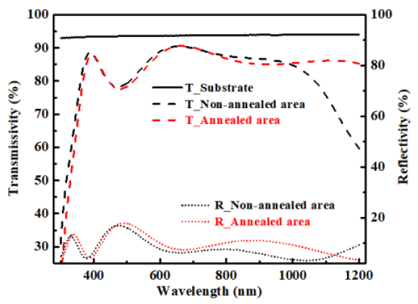 图1.退火后ITO薄膜在近红外波段透过率的提升
