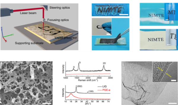图1.激光诱导石墨烯材料从液态前驱体直接合成
