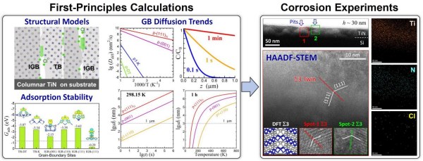 这一研究构建了晶界涉氯腐蚀动力学规律,揭示了相关的原子尺度机理,为新型氮化钛基防护涂层研发提供了性能规律指导和科学依据。