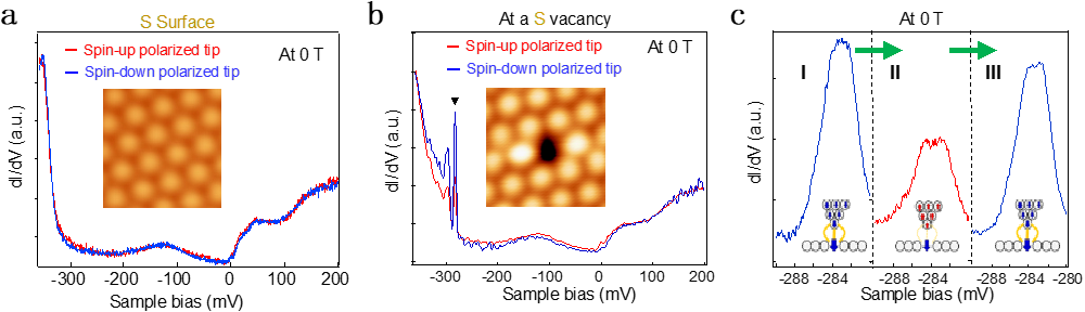 S表面单原子缺陷处的空间局域化激发态的自旋极化表征