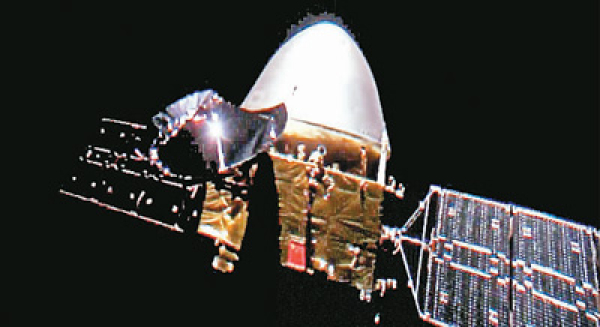 10月1日,国家航天局发布中国首次火星探测任务“天问一号”探测器飞行图像。新华社发(国家航天局供图)