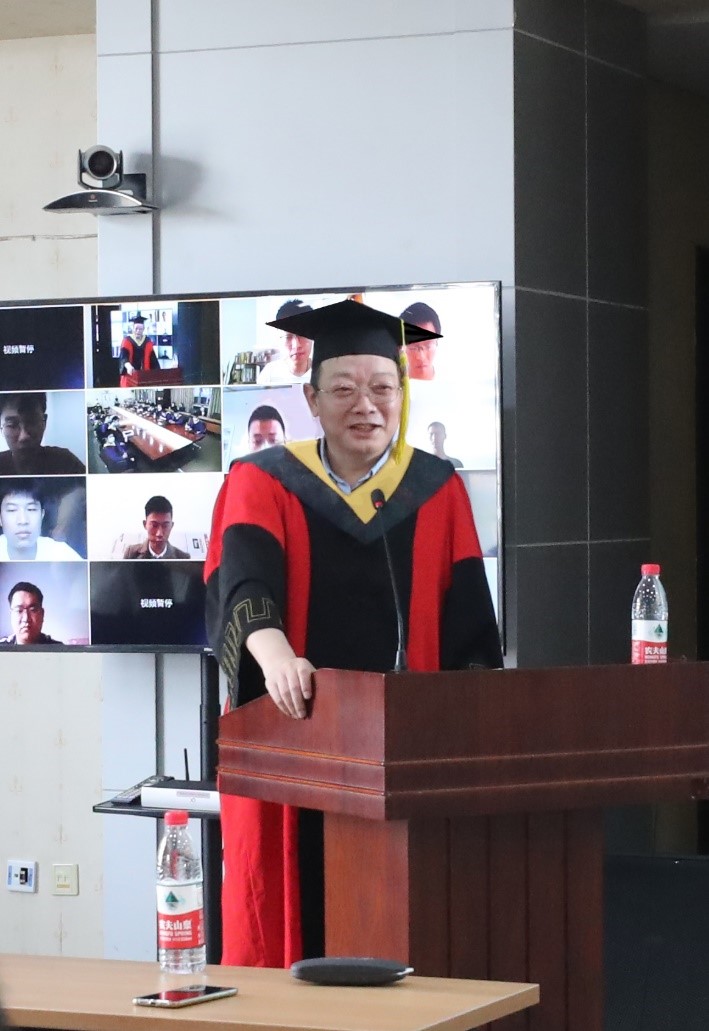 微电子所博士毕业生张续猛、硕士毕业生姜一扬、微电子学院硕士毕业生候伟等3名同学代表2020届全体毕业生发言,感恩微电子所、微电子学院的培养,感谢导师的教诲,同学的关怀及家人的支持。他们表示,进入国科大和微电子所以来,自己在完成科研训练的同时不断成长,不断充实,对科研和产业的认识更加深刻,并逐渐懂得了肩上的责任,同时对微电子领域产生了极大的热情。在时代潮流面前,未来要更加努力地奋勇向前,坚守奋斗初心,努力为国家和民族贡献自己的力量,书写光辉篇章。