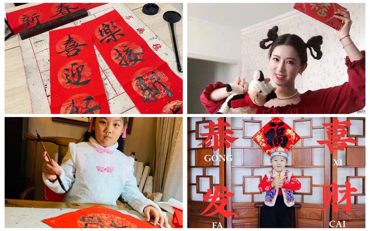 活动现场一片欢腾喜庆的节日气氛,大红灯笼高高挂,金红剪纸不见头。一幅幅春联书写着最殷切的祝福,墙上的“福”字连结着象征团结的中国结,中国结下垂着象征收获的双鱼,让活动现场始终洋溢着家的温暖。
