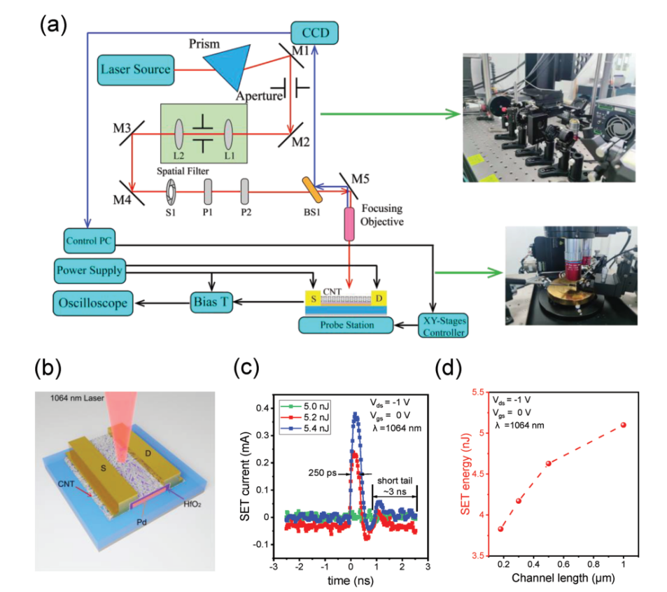 图1:碳纳米管器件与电路的激光模拟单粒子测试结果